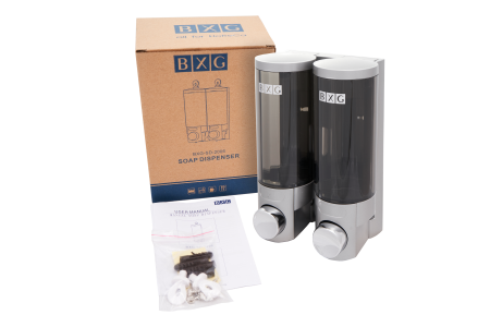 BXG SD-2006C - сдвоенный диспенсер для мыла. Предназначен для использования для ванных и туалетных комнат с малой и средней проходимостью. Идеально подходит для использования в ванных комнатах т.к. в может одновременно использоваться, например, для подачи и хранения геля для тела и шампуня.